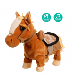 Calut interactiv de culoare maro, care porneste inainte si merge cu adevarat atunci cand apasati butonul de activare.