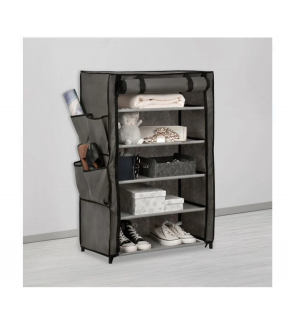 Mobilier - Etajera textila cu 5 nivele, cu stofa in fata care se inchide cu un fermoar, in timp ce atunci cand nu este utilizata poate fi pliata si fixata cu o curea cu banda cu scai, picioare pentru a evita atingerea podelei si buzunare externe practice pentru obiecte mici. Cadrul este din metal robust, iar designul este modern. Este usor de asamblat si va ajuta sa economisiti spatiu, mai ales daca spatiul este limitat.