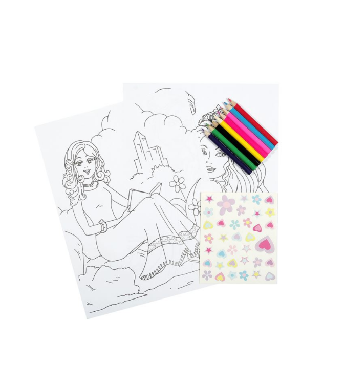 Fiecare set include: 8 creioane, 10 acuarele, autocolante si foi de design preimprimate cu personajele tale favorite.