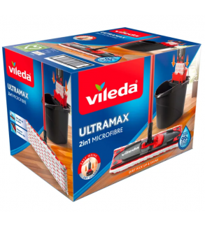 Setul de curatenie Vileda Ultramax contine mop din microfibre, coada telescopica si galeata cu dispozitiv de stoarcere. Acesta este usor de folosit, lasand suprafetele stralucitor de curate.