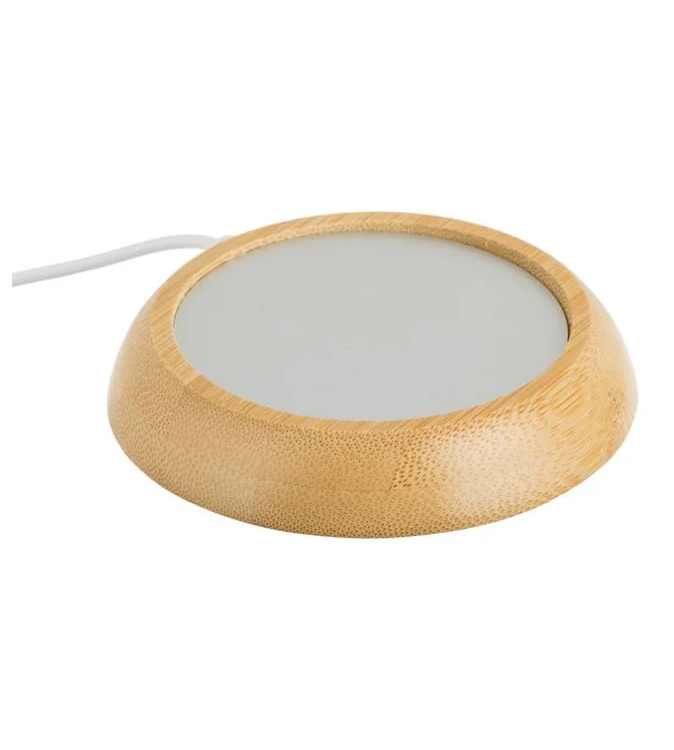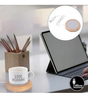 Incalzitor rotund cu baza din bambus cu USB pentru a va mentine bautura la temperatura ideala. Suportul va mentine bautura calda datorita sistemului special de control termostatic cu consum redus de energie. Cablul are o lungime de 85cm.