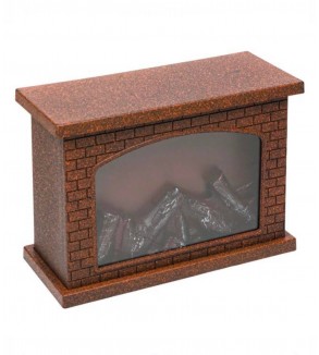 Semineu decorativ cu iluminare și un design care amintește de un adevărat șemineu încorporat.