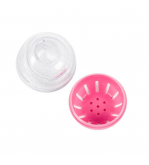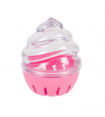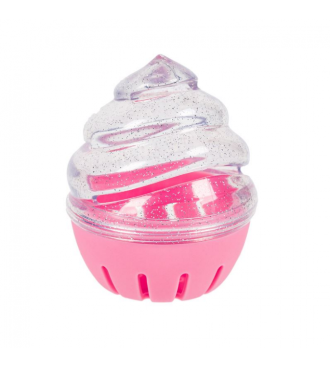 Trusa de machiaj pentru burete, roz si transparent cu deschideri pentru a respira si a se usuca, in forma de cupcake.