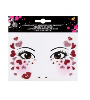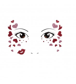 Autocolant decorare pentru fata cu inimioare cu sclipici.