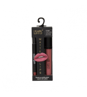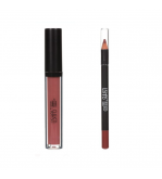 Set ruj sub forma lichida si nuanta de bej inchis, impreuna cu un creion de buze pentru un machiaj complet.
