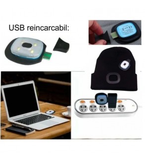 – dispozitivul cu LED-uri se scoate din caciula pentru a fi reincarcat cu conexiune USB, care ar trebui sa dureze aproximativ 2 ore.