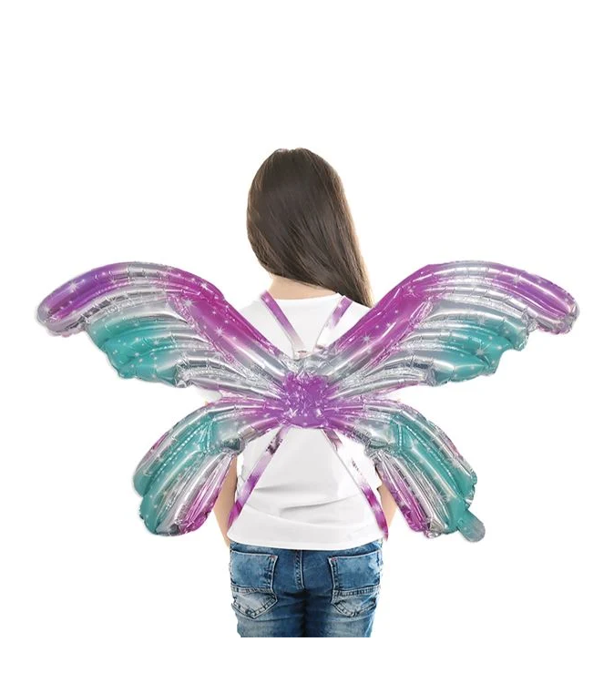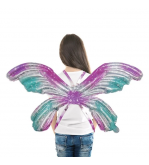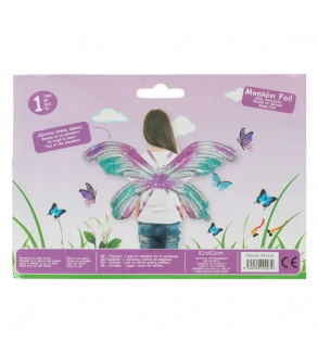 Balon din folie in forma de aripi de fluture 3D, de culoare verde fucsia verde. Se umfla cu aer sau heliu. Se leaga la umeri. Include pai de hartie pentru umflare.