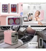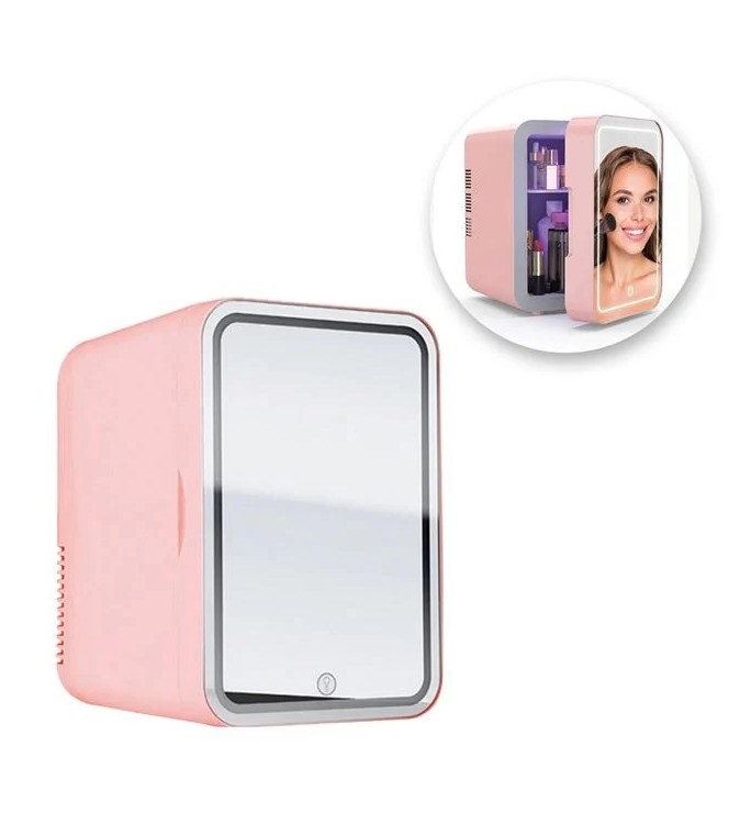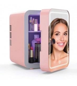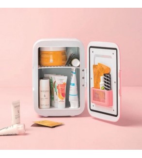 Mini frigider pentru cosmetice cu o capacitate de 4l pentru a avea intotdeauna produsele cosmetice in stare perfecta. Functioneaza cu cablu de alimentare AC si cablu DC pentru masina este inclus. Cu alimentare AC 100-240V 60hz 30-36W si temperatura 15-20ºC sub temperatura mediului ambiant si o temperatura minima de 3ºC (in functie de conditiile mediului inconjurator) este potrivit si pentru gustari. Comutarea de la rece la cald este usoara. Usa are o oglinda cu lumina cu comutator tactil si 3 intensitati ale luminii. Raftul interior poate fi indepartat pentru a se adapta nevoilor dumneavoastra, are un nivel redus de zgomot si este ecologic deoarece este 100% fara freon. Este mic si portabil, ceea ce il face foarte usor de transportat. Dimensiunile interne sunt de 20x14x13cm
