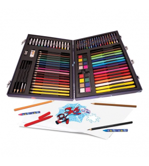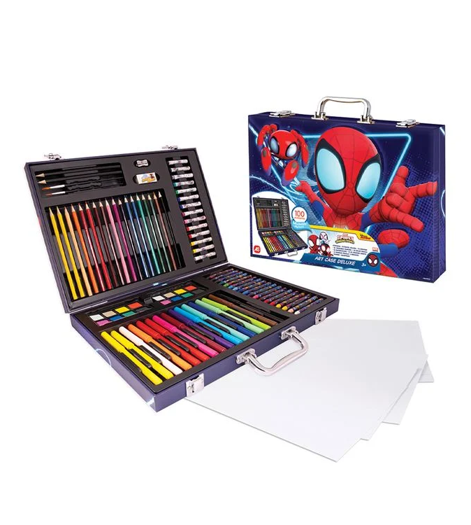 Indiferent de cate culori ai, nu poti avea niciodata destule pentru desen! In cutia HappiHobbi Deluxe Marvel Spidey vei gasi 100 de accesorii pentru a colora desenele voastre preferate si a va initia in diferite tehnici. Totul se afla intr-o cutie cu maner cu eroul vostru preferat Spidey, astfel incat sa o puteti lua peste tot cu voi!