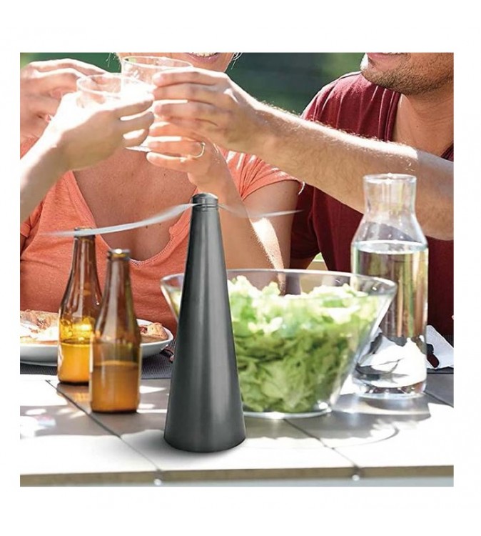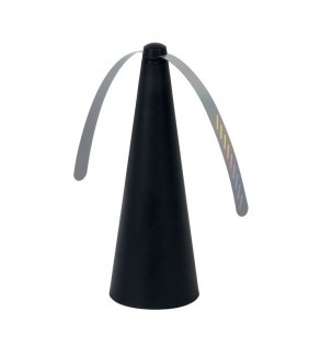 Ventilator antiinsecte cu baza conica si 2 benzi rotative de 19 cm lungime. Pune-l pe masa langa platourile cu mancare si pune-l la treaba. Benzile metalice cu un design olografic pe margine incep sa se roteasca si sa respinga mustele sau viespile, tantarii si musculitele departe de tine si de mancare. Benzile nu prezinta risc de ranire in timpul rotatiei lor. Functioneaza cu 2 baterii AA (nu sunt incluse).