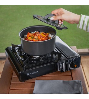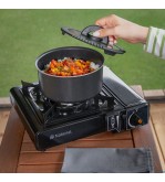 Aragazul cu puterea nominala de 2.2 kW este o solutie practica conceputa in special pentru camping, insa poate fi utilizat si casnic.