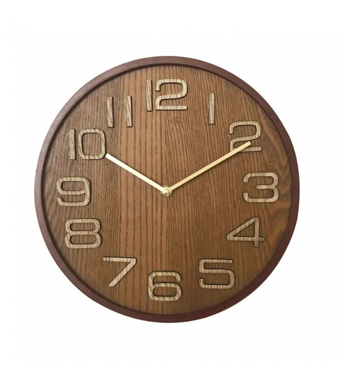 Ceas perete, analog, rotund, din lemn, diametru 31.5 cm