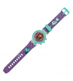 Ceas de mana digital pentru fete cu curea mov, model Gabby's Dollhouse si inel colorat pe cadran. Un singur buton activeaza lumina colorata care se aprinde si se stinge automat dupa un timp. Are ora, data si o curea moale. Functioneaza cu 2 baterii AG10 (incluse). Include instructiuni.