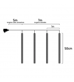 Instalatia este prevazuta cu 240 LED-uri multicolore si functioneaza pe baza de curent electric (230V / 50Hz). Cablul instalatiei are lungimea de 23.9 metri, iar cablul de alimentare verde are lungimea de 10 metri.