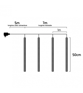 Instalatia are puterea de 5.6W, gradul de protectie IP44 si controler cu 8 functii, care va permite selectarea programului de iluminat dorit. Aceasta poate fi utilizata atat la interior, cat si la exterior, realizand un iluminat festiv atractiv si placut.