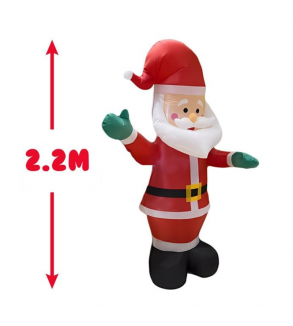 Figurina decorativa de Craciun Mos Craciun cu lumina LED incorporata. Se umfla si se dezumfla in cateva minute, este alimentata cu energie electrica si este potrivit pentru utilizare in interior si exterior. Ambalajul include transformatorul si 2 franghii de legare cu 4 tarusi pentru a-l fixa la sol. Lumina cu 3 LED-uri este de culoare alba.
