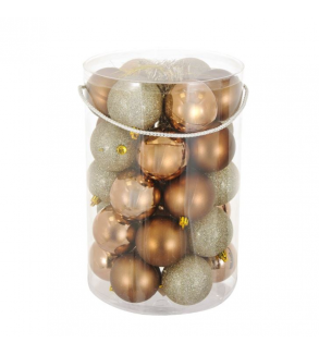 Ornamente brad de craciun, globuri de culoare bronz si bej, mat, stralucitoare si glitter cu beteala. Combinati diferite culori, modele si dimensiuni pentru o atmosfera speciala de Craciun! Lumea magica a Craciunului!