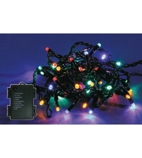 Instalatia este prevazuta cu 60 LED-uri multicolore si functioneaza cu 3 baterii AA (se achizitioneaza separat). Cablul instalatiei are lungimea de 5.9 metri, iar cablul de alimentare are lungimea de 0.5 metri. Acesta este de culoare verde, iar distanta dintre LED-uri este de 10 cm.