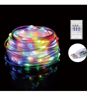 Instalatia luminoasa cu 100 LED-uri RGB si lungimea de 10 metri este ideala pentru a aduce un plus de culoare si tehnologie in decorul casei tale de sarbatori.