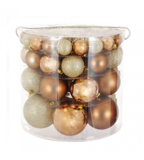 Ornamente brad de craciun, globuri de culoare bej si bronz, de 4 dimensiuni, mat, stralucitoare si cu glitter, cu beteala. Combinati diferite culori, modele si dimensiuni pentru o atmosfera speciala de Craciun! Lumea magica a Craciunului!
