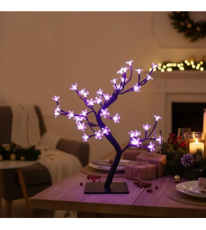 Decoratiunea in forma de copac este prevazuta cu 48 LED-uri cu lumina violet, are inaltimea de 45 cm si este sustinuta de un suport inclus. Aceasta decoratiune luminoasa este ideala pentru amenajarea unui spatiu de poveste, in perioada sarbatorilor de iarna, atunci cand iluminatul, sub diferite forme, este cel mai indragit.