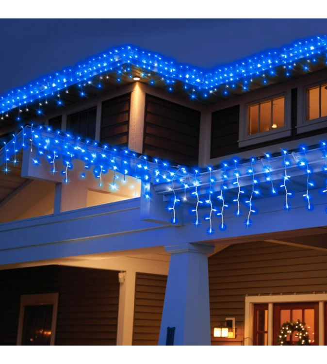 Instalatia cu turturi este prevazuta cu 480 LED-uri cu lumini albastre si functioneaza pe baza de curent. Tensiunea de intrare este de 220-240V, 50 Hz, iar iesirea este de 31V AC 6V. Cablul instalatiei este transparent, are lungimea de 11.2 metri si inaltimea de 0.5 metri, iar cablul de alimentare are lungimea de 10 metri. Acesta este transparent, iar distanta dintre LED-uri este de 5 cm.