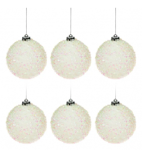 Ornamente brad de craciun, globuri de culoare alba cu tinsel. Combinati diferite culori, modele si dimensiuni pentru o atmosfera speciala de Craciun! Lumea magica a Craciunului!