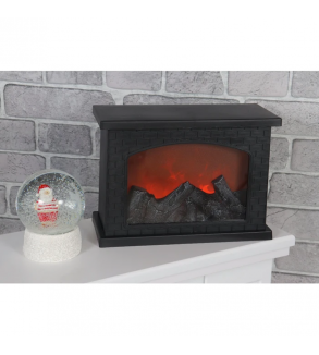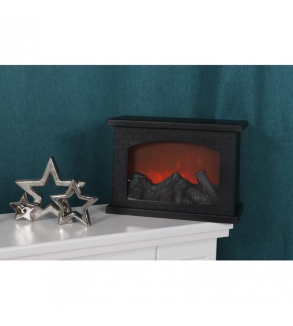 Decoratiunea semineu cu efect de flacara include 3 surse de tip LED, cu lumina calda si functioneaza cu 3 baterii AA (se achizitioneaza separat) sau se poate alimenta la USB.