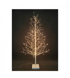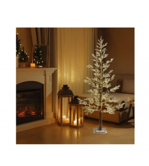 Brad de Craciun alb, cu crengute subtiri iluminate de 870 LED-uri si 8 programe de lumini. Dispune de baza din lemn si asamblare usoara. Functioneaza la curent (3.6W - 24V) si are cablu de 5 metri. Potrivit si pentru exterior, cu conditia sa fie protejat corespunzator impotriva conditiilor meteo nefavorabile (ploaie, zapada, vant).