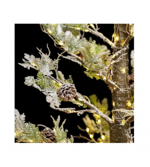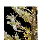 Brad de Craciun cu crengute inzapezite, conuri naturale si 600 de LED-uri care raman aprinse constant. Dispune de baza din lemn si asamblare usoara. Functioneaza la curent (6W - 220V) si are cablu de 2,5m. Este potrivit si pentru exterior, cu conditia sa fie protejat corespunzator de conditiile meteo nefavorabile (ploaie, zapada, vant).