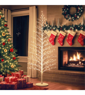 Pom de Craciun, alb cu ramuri subtiri cu 326 de becuri LED, 3,2V, 20mA. Cu baza din lemn, usor de asamblat.