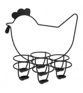 Suport metalic pentru oua de Paste cu 10 compartimente. In forma de iepure de culoare rosie cu baza rotunda din lemn.