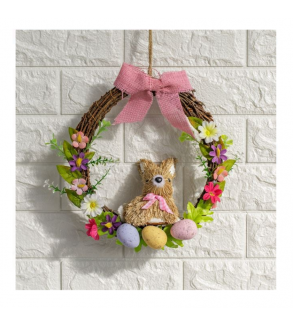 Coronita de Paste decorata cu oua de culori paste, iepuras si flori.