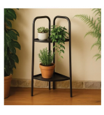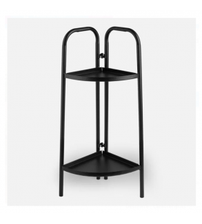 Suport pentru flori, metalic de colt, de culoare negru mat, cu 2 niveluri. Se asambleaza foarte usor si este prevazut cu 2 tavi metalice de 30x20 cm pentru ghivece sau cache-pot-uri cu plante si flori. Poate fi utilizat atat pentru plante, cat si pentru obiecte decorative. Greutate maxima per raft: 3 kg.
