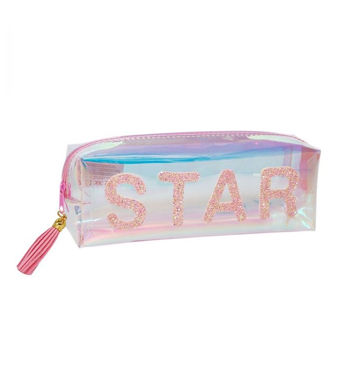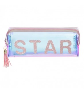 Ghiozdan pentru fete, cu un compartiment buzunar in fata, de culoare lila holografic cu model smile si pompon. Are fermoare durabile si curele reglabile.
