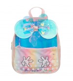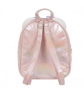 Ghiozdan pentru gradinita, roz cu model unicorn si confetti argintii. Are un compartiment mare si un buzunar spatios, buzunar frontal cu fermoar, 2 buzunare laterale cu plasa roz si maner roz.