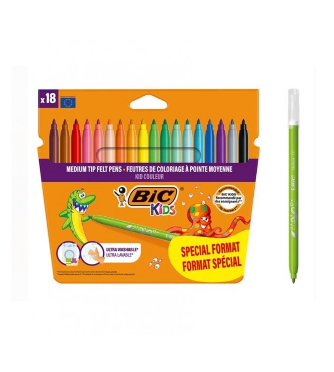 Carioci lavabile 18 culori intense. Varf ce la presiune opreste fluxul de cerneala.