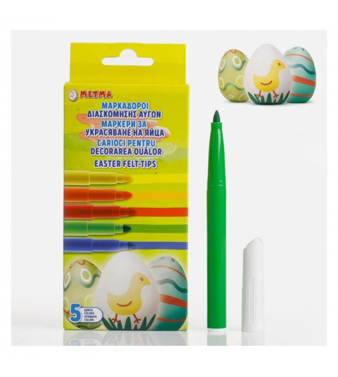 Set cu markere pentru decorarea oualor de Paste, de culoare galbena, portocalie, rosiw, verde si albastra. Creeaza propriile tale modele unice!