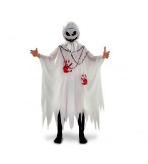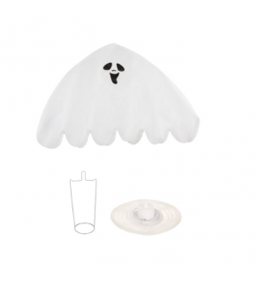 Fantoma decorativa reala de Halloween, cu lumina colorata in albastru, verde, violet si roz.