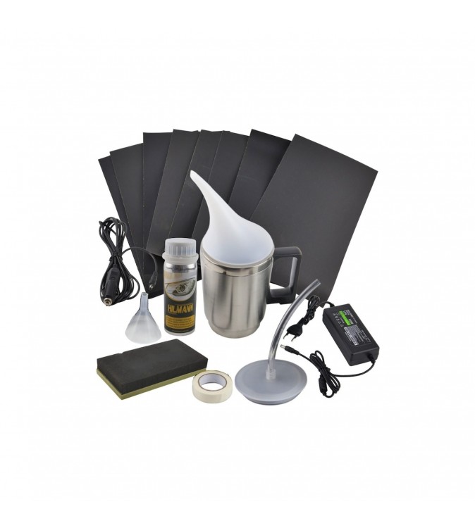 1 cana speciala pentru incalzit polimerul 8 coli abrazive pentru slefuit (p320–p2000) 1 rola banda de mascare 1 palnie din plastic 1 capac curbat 1 capac cu tub 1 bloc de slefuit manual 1 dispozitiv de alimentare 220v / 12vpret pe set