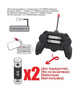 Macara cu cadru rotativ la 360º, carlig care urca si coboara, container pentru incarcare si o inaltime totala de 120cm. Cu telecomanda care functioneaza cu 2 baterii AA (nu sunt incluse).
