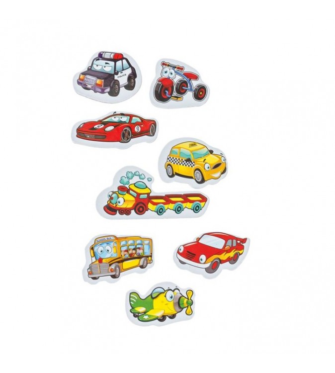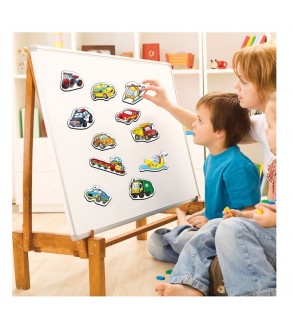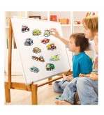 Jucarii magnetice din carton in forma de diferite vehicule (aprox. 5.5x5.5cm). Sunt usoare, se lipesc cu usurinta pe o tabla magnetica sau pe o suprafata metalica si ii insotesc pe copii in jocul creativ care creeaza povesti si dezvolta imaginatia.