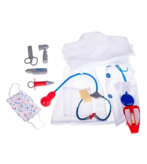 - un sort alb prins cu nasturi cu cuvantul „Doctor”,
