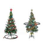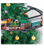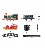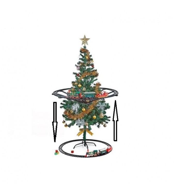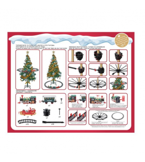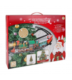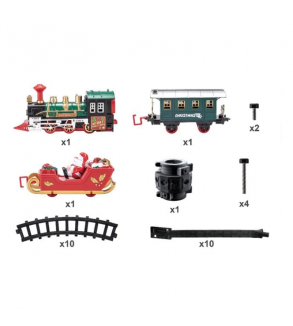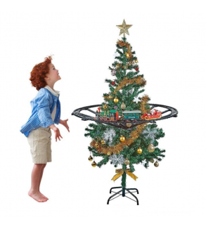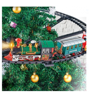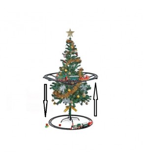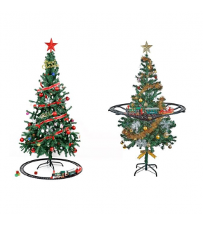 Trenulet de Craciun cu sine cu diametrul de 88cm (perimetrul sinelor 270cm), cu lumini si muzica. Sinele sunt reglabile pentru a se potrivi cu majoritatea pomilor naturali si artificiali. La fel de usor poate fi asezat pe podea. Functioneaza cu 2 baterii AA (nu sunt incluse). Este ideal pentru copiii cu varsta de la 3 ani si (Atentie! Nerecomandat copiilor mai mici de 3 ani - contine piese mici, pericol de sufocare).