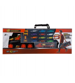 Camion care se transforma usor intr-o valiza pentru a transporta masini. Contine 12 masini, dar poate gazdui 42 in total, cu un spatiu dedicat pentru un camion. Contine chiar si semne de circulatie, necesare pentru siguranta atunci cand camionul este parcat sau descarca. Cu ajutorul manerului puteti transporta valiza oriunde doriti sa va jucati.