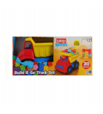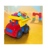 Camion cu bena rabatabila, de culoare rosie, galbena si albastra, cu roti mari negre. Contine 30 de caramizi colorate pentru constructii. Dupa joaca, caramizile pot fi depozitate in bena camionului.