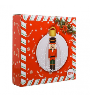 Trenulet de Craciun cu sine cu diametrul de 88cm (perimetrul sinelor 270cm), cu lumini si muzica. Sinele sunt reglabile pentru a se potrivi cu majoritatea pomilor naturali si artificiali. La fel de usor poate fi asezat pe podea. Functioneaza cu 2 baterii AA (nu sunt incluse). Este ideal pentru copiii cu varsta de la 3 ani si (Atentie! Nerecomandat copiilor mai mici de 3 ani - contine piese mici, pericol de sufocare).