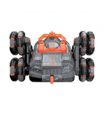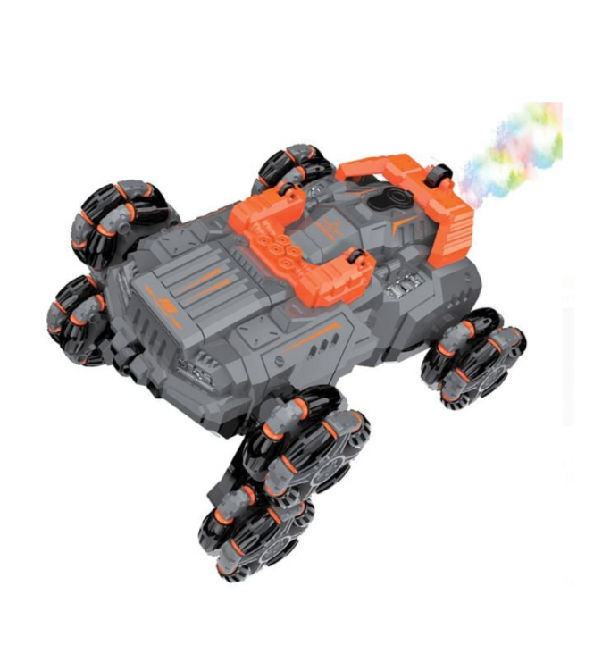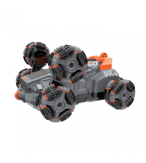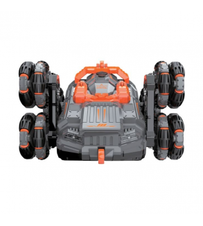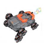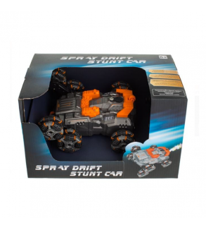 Masina de cascadorie alimentata cu baterii, cu actiune uimitoare, ax rotativ pe rotile din fata si sistem de difuzare a luminii. Dispune de simulare a esapamentului care face vehiculul si mai impresionant. Frecventa de 2.4 GHz si roti cu aspect unic vor face jocul si mai distractiv. Functioneaza cu 1 baterie de tip 3.7V pentru vehicul (inclusa) si 2 baterii de tip AA pentru telecomanda (nu sunt incluse).