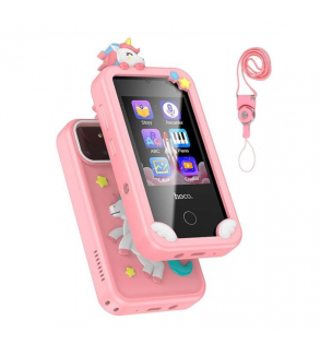 Smartphone pentru copii intr-o husa roz din silicon, cu design unicorn. Dispune de camera foto, video (inregistrare si redare), galerie, inregistrare si redare audio, jocuri, povesti, invata si joaca-te cu literele, pian, editare imagine, editare video, desen, cronometru si numaratoare inversa, ceas cu alarma, calculator, teme si lanterna.