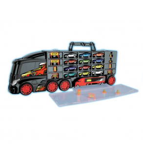 Camion care se transforma usor intr-o valiza pentru a transporta masini. Contine 12 masini, dar poate gazdui 42 in total, cu un spatiu dedicat pentru un camion. Contine chiar si semne de circulatie, necesare pentru siguranta atunci cand camionul este parcat sau descarca. Cu ajutorul manerului puteti transporta valiza oriunde doriti sa va jucati.
